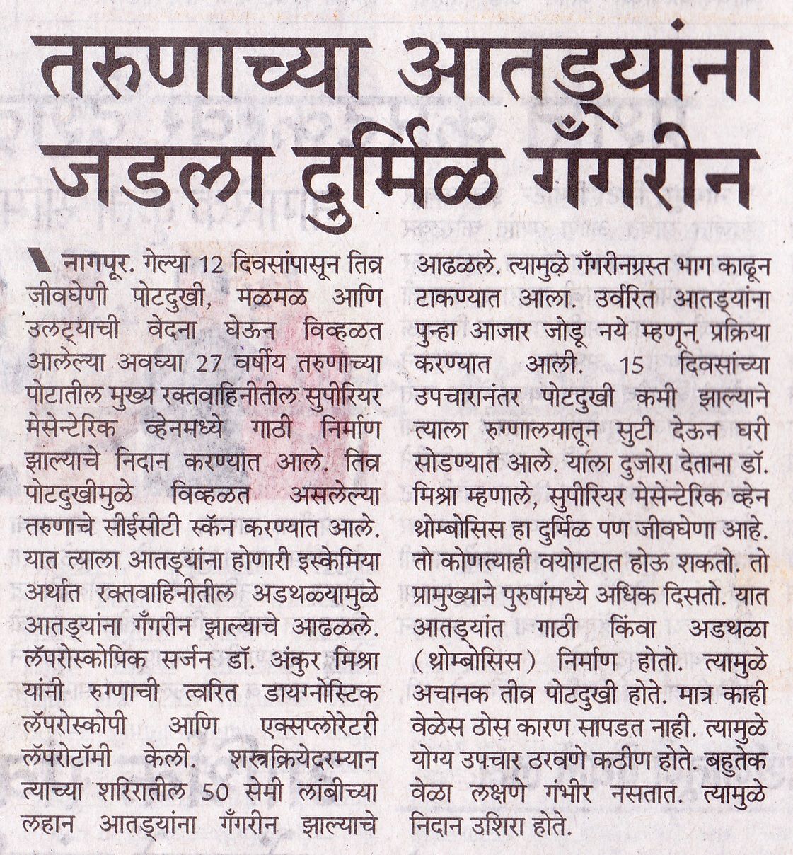 Press Coverage: Multiple Success Stories by Dr. Ankur Mishra